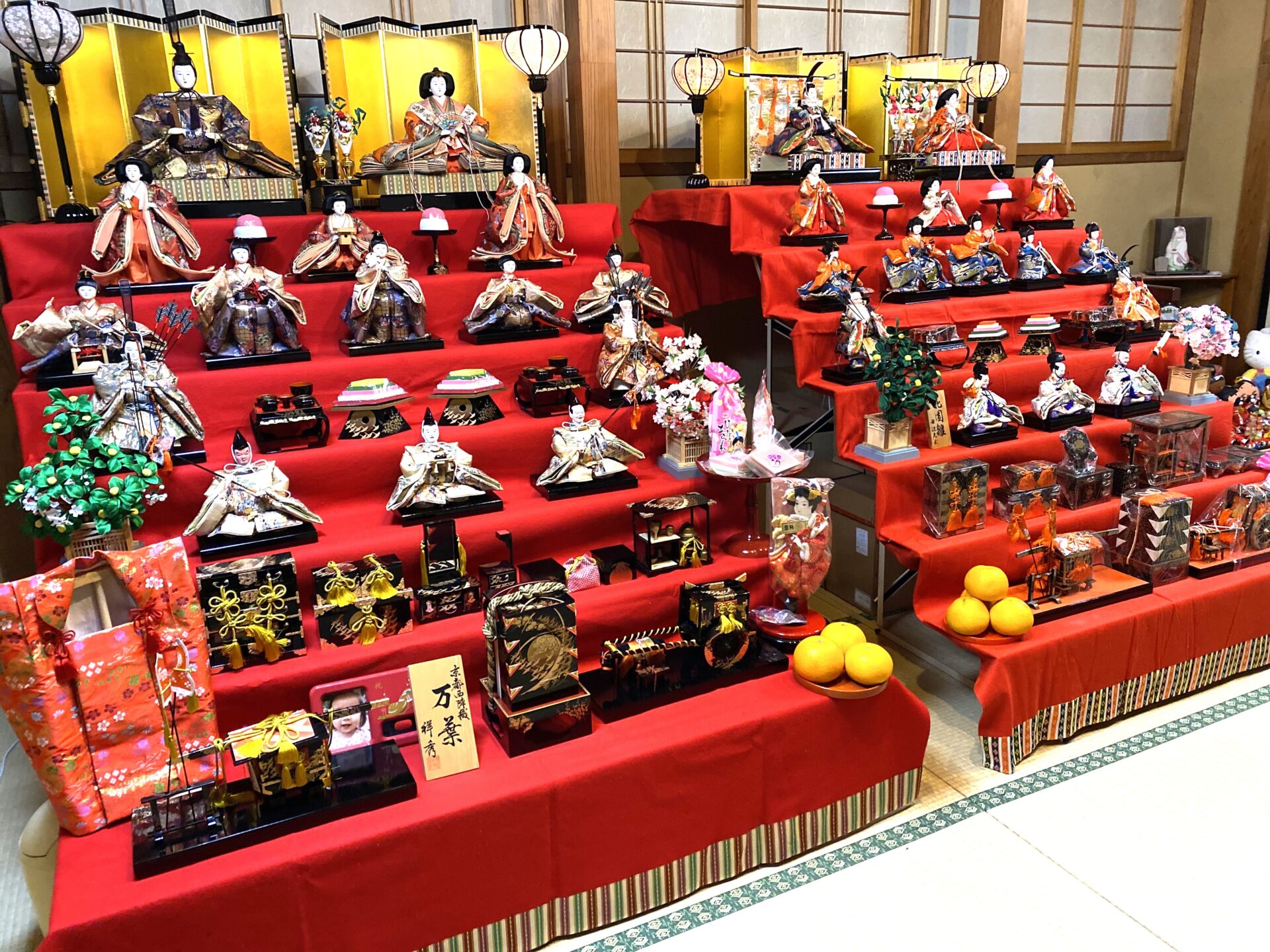 あつみ温泉の温泉街の旅館や商店で歴史あるひな人形の展示をご覧いただけます。