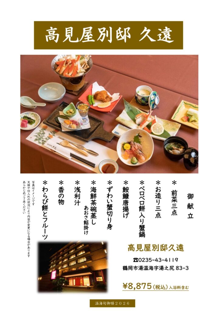 温海旬御膳2026 ~【あつみ温泉旅館】 高見屋別邸 久遠 詳細