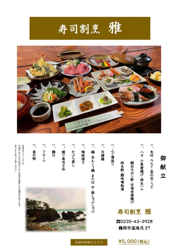 温海旬御膳2026 ~【温海地区】寿司割烹 雅 詳細