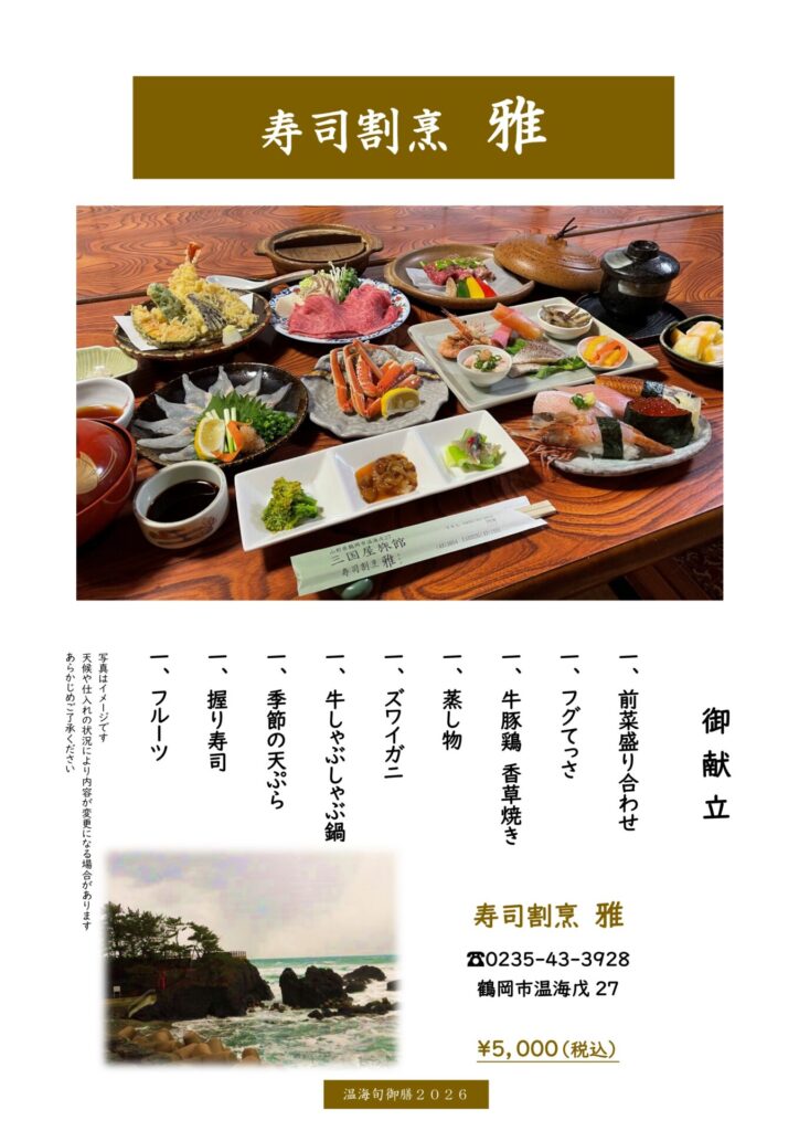 温海旬御膳2026 ~【温海地区】寿司割烹 雅 詳細