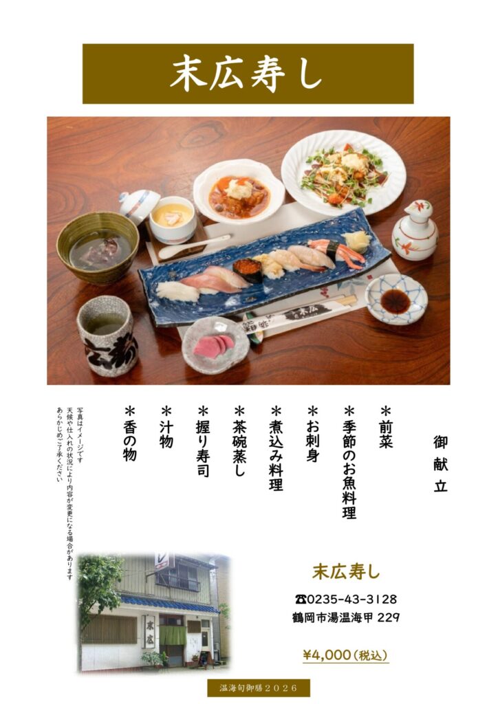 温海旬御膳2026 ~【あつみ温泉地区】末広寿し 詳細